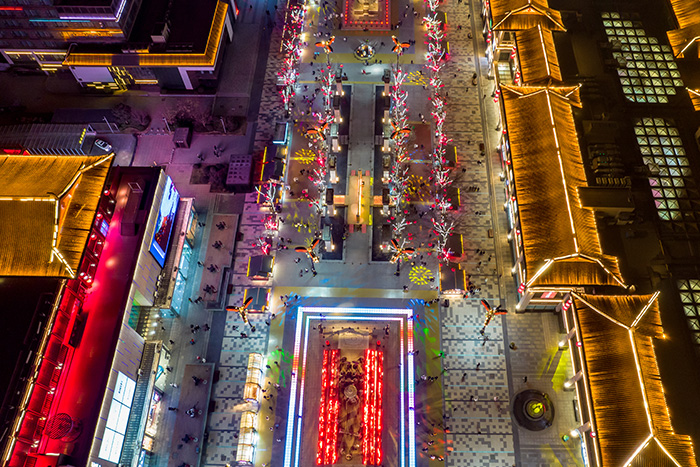 1,打造“爆點”要求深度挖掘地方文化內(nèi)涵。每一個地方都有其獨特的歷史、文化和傳說。將這些元素融入燈光亮化設(shè)計,可以使燈光秀成為講述地方故事的巨大銀幕,讓光影成為傳播文化的使者。比如,西安的大唐不夜城通過燈光與VR技術(shù)再現(xiàn)盛唐風華,將歷史文化與現(xiàn)代科技融合,為游客呈現(xiàn)了一幕幕生動的歷史畫卷,成為文旅亮化的經(jīng)典“爆點”。