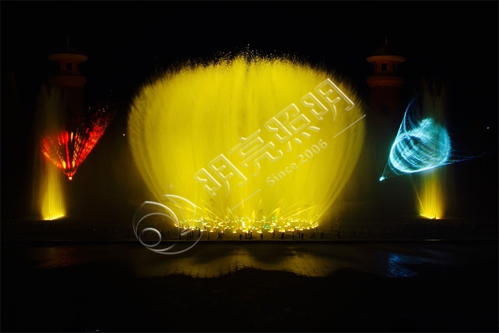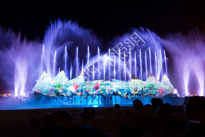 水幕電影設(shè)備是由投影機(jī)、片源、音箱和主控系統(tǒng),以及噴泉專用汞設(shè)備等組成,而投影機(jī)是水幕電影的重中之重,投影機(jī)設(shè)備的選擇依據(jù)是流明度的高低。