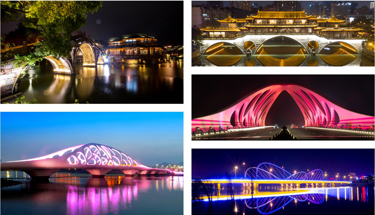 城市橋梁分兩種,一種是人行過街天橋及立交橋,另一種是跨越江河的橋梁除提供交通方便的同時,也可以打造夜間標志景觀,促進夜間消費,提升城市經(jīng)濟發(fā)展。橋梁亮化提高城市整體形象,創(chuàng)造亮點,吸引人們的注意。